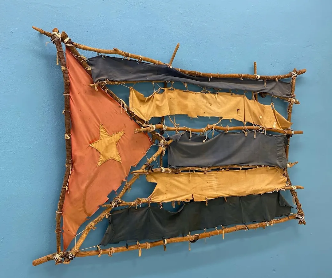 Dice Corina Matamoros: “En primer lugar, Kcho como artista arranca con los símbolos patrios en los años 90 y hace su primera bandera con ramas y telas, que al principio le puso Herencia pero todo el mundo le decía La bandera y ese fue finalmente el nombre que quedó. Está hecha con ramas y la bata de casa de la mamá y su pañuelo. Cuando un adolescente hace una bandera como esa, es eterna. Es un símbolo de una nación pero lo es también de su propia vida.”